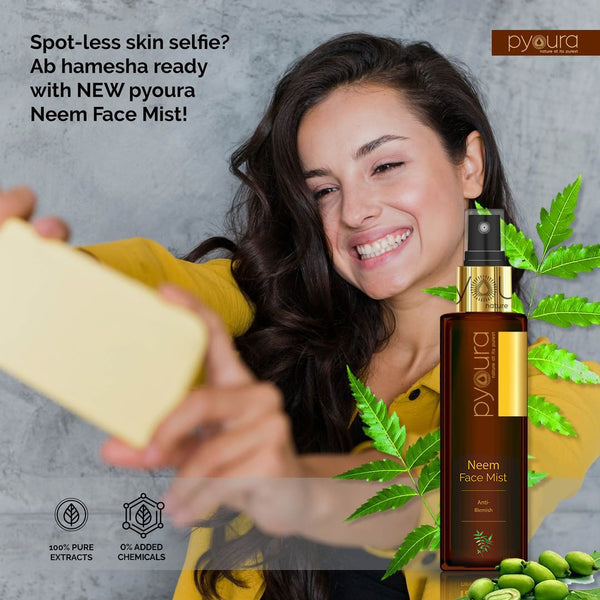 The output is pyoura Anti-Blemish 100% natural Neem Face Mist which captures it all.