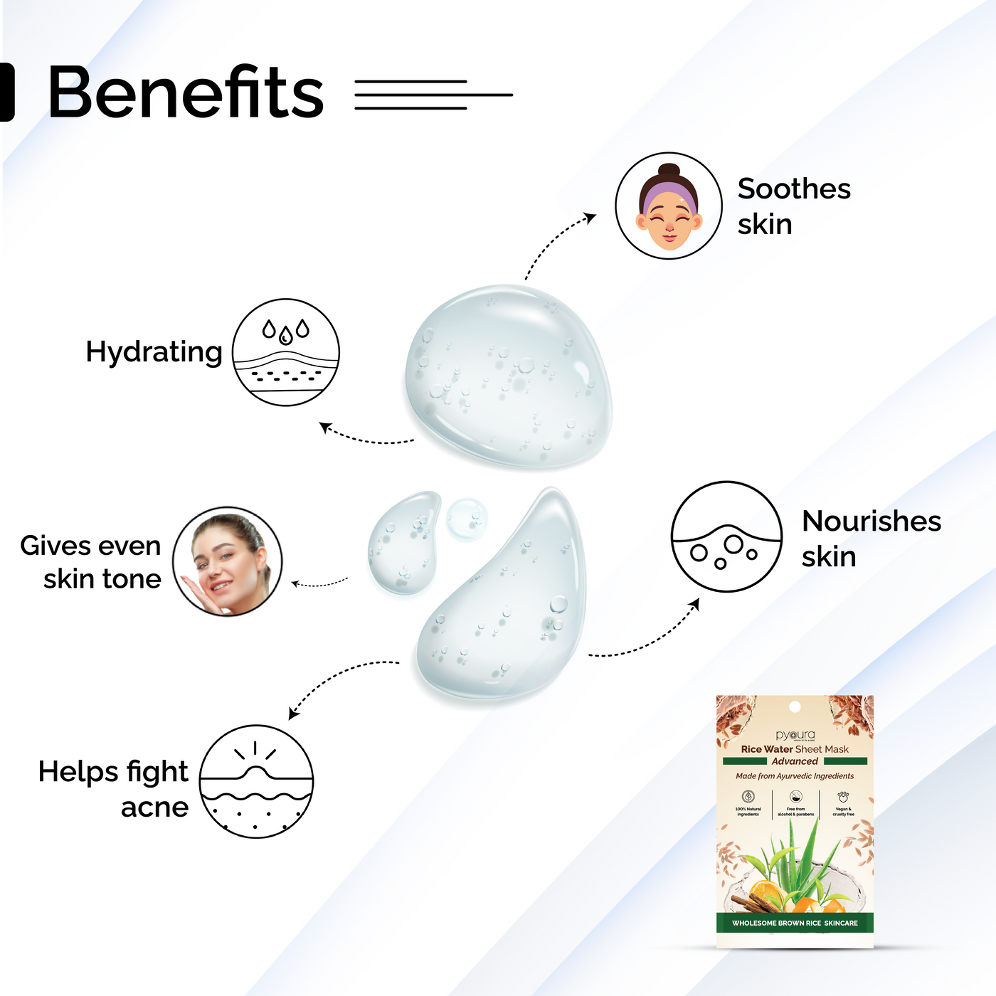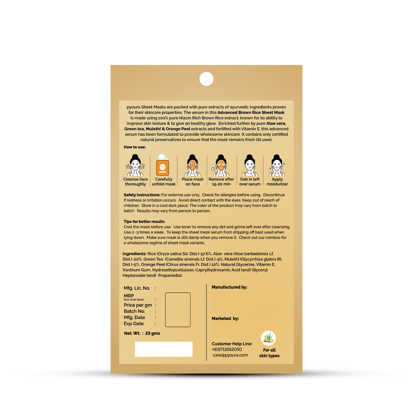 Strengthen and rejuvenate your skin with the PYOURA Rice Advanced Sheet Mask. Packed with brown rice antioxidants, vitamins, and minerals, it provides deep hydration, improves elasticity, and refines skin tone. This wholesome formula supports overall skin health while restoring softness and resilience. Regular use leaves skin nourished, radiant, and naturally glowing with vitality.