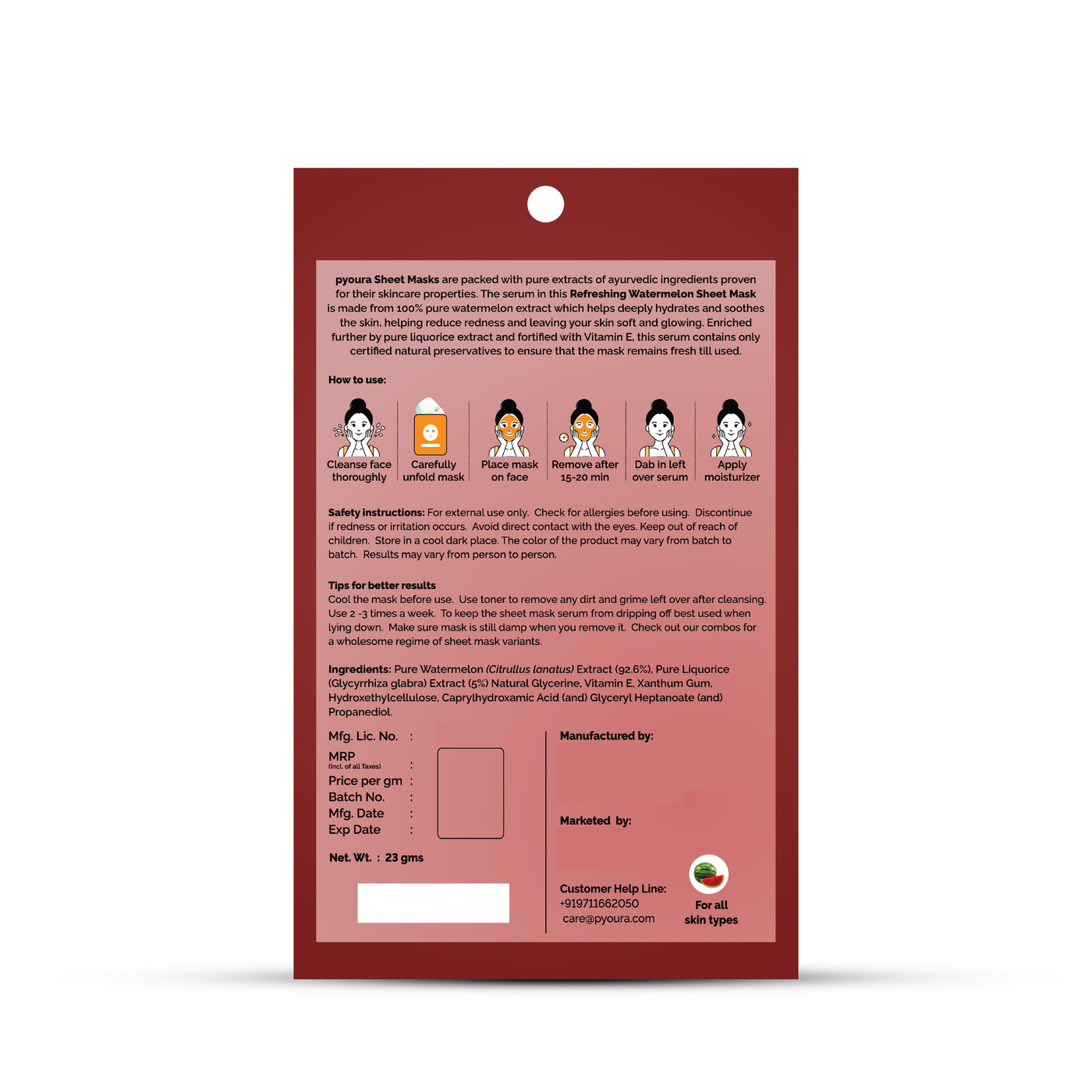 Replenish your skin with the juicy hydration of the PYOURA Watermelon Sheet Mask. Bursting with vitamins and antioxidants, it delivers deep moisture to dry, tired skin while restoring softness and plumpness. Its lightweight yet nourishing formula refreshes and revitalizes the complexion, leaving your skin dewy, radiant, and full of life. Perfect for intense hydration needs.